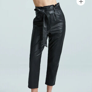 Commando Faux Leather Paperbag Pants Waist Tie Black Pull On Size XL
