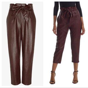 Commando Faux Leather Paperbag Pants Women Medium Brown High Rise Cropped Belted