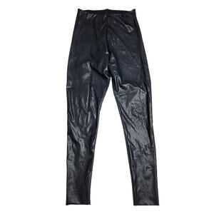 Commando Faux Pebble Leather Black Control Raw Hem Stretch Leggings Size Large