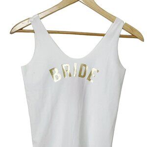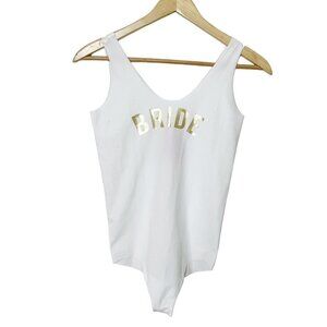 Style Tags: bridal bodysuit, gold bride lettering, elastic-free, white one-piece, bridal lingerie