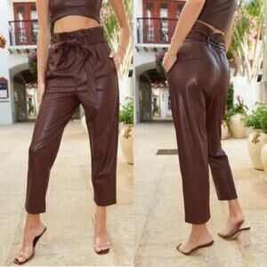 Commando Pants Womens Medium Oxblood Brown Faux Leather Vegan Paperbag Waist