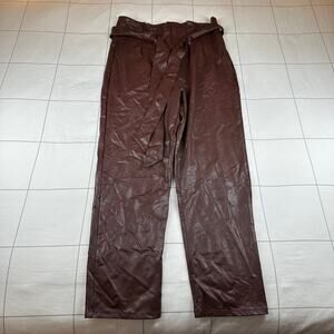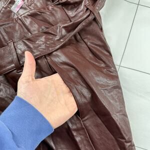 Commando Pants Womens Medium Oxblood Brown Faux Leather Vegan Paperbag Waist