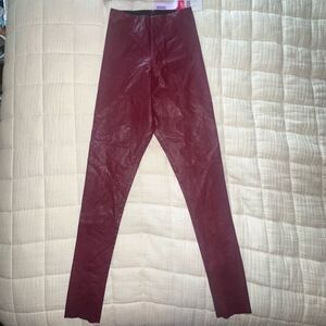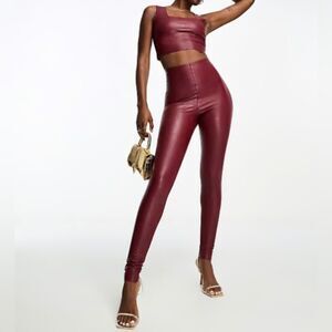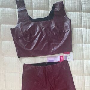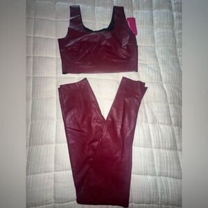 Commando SET Faux Leather Leggings & Square Neck Crop Top in Garnet Red Sz M NWT