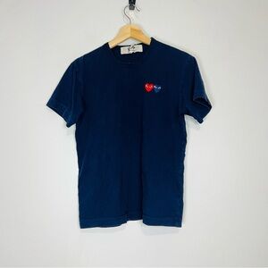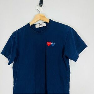 Comme De Garçons Play Navy Double Hearts T-Shirt Medium