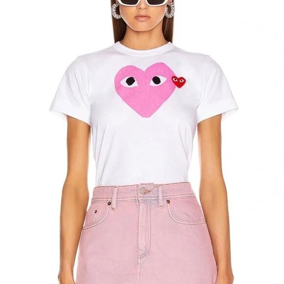 Comme Des Garcobs PLAY Red Heart Tee In White Size Medium