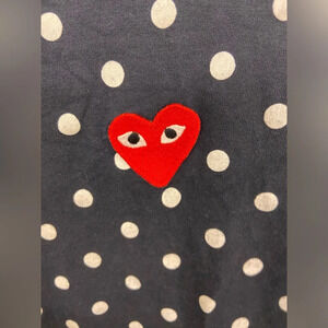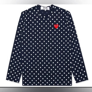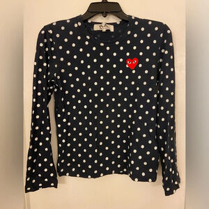 Comme Des Garcons PLAY Polka Dot Long Sleeve Tee White & Navy Size Small.