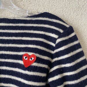 Comme Des Garcons Play Womens Top Blue Wool Striped Sweater Size Medium