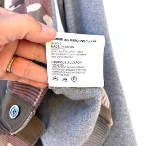 Rare Comme des Garçons Homme camo panel cardigan, crafted in Japan from soft cotton knit. Features military-inspired camouflage mixed with grey sleeves and rib trim — a signature Rei Kawakubo twist on classic prepwear. From AD2011 collection, making it a true archival piece for collectors. Perfect for layering with denim, cargo trousers, or streetwear fits. A must-have for avant-garde fashion fans, CDG archive collectors, or those looking to elevate their wardrobe with a standout designer knit.