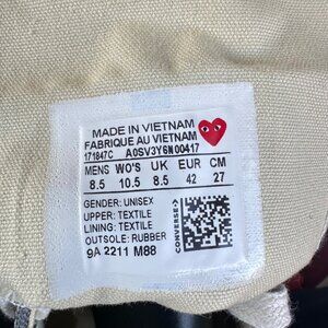 🖤Comme Des Garçons Play Hearts Converse Chuck 70 Hi Mens Shoes 8.5 Gray 171847C