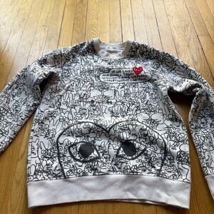Comme Des Garçons Play Size L Black & White Doodle Graphic Print Sweatshirt