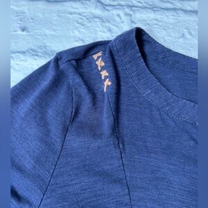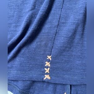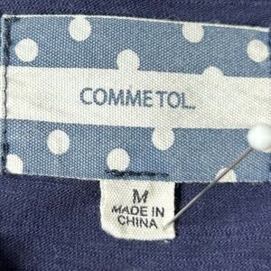Comme Toi Navy V Neck Short Sleeve Top w/Tan Accents. Size Medium.