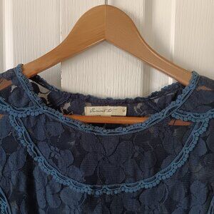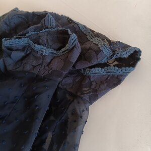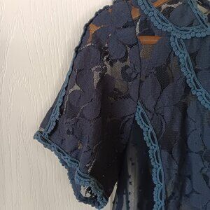Comme Toi Women's Navy Blue Floral Lace Mesh Sheer Short Sleeve Blouse Size M