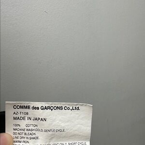 Known for its minimalist and avant-garde style, Comme des Garcons is a high-end fashion brand based in Japan. This T-shirt is a stylish and versatile piece that can be worn for casual everyday looks or dressed up for a more polished ensemble.