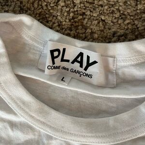 Charming white tee with iconic red heart design. Adds a playful touch. Runs Small