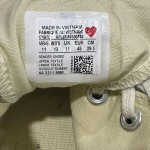 Comme des Garcons Play x Converse Chuck 70 High Top Sneakers Size 11 Grey