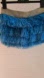 This mini skirt with bold blue feathers is a stunner! A silver bugle bead belt band creates a dynamic and modern look. Perfect for cocktail or night at the club!