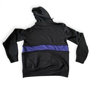 Pull-over hoodie with contrast band and kangaroo pocket.