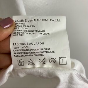 This classic cotton tee is elevated with the brand's signature heart detail in a double feature. Roundneck Short sleeves Pullover style Front heart details Cotton Dry clean Made in Japan 090 SIZE & FIT About 24" from shoulder to hem Model measurements: 5'10" tall Model is wearing a US size Small Note: there may be an error on the tag. Shows fabric content as wool, however it feels like cotton Photos represent condition as accurately as possible, shot in natural light and free of retouching. My items are obtained from various sources, so they are in as-is condition. There may be minor issues such as stray threads or lint. Item may need to be laundered. Item may arrive wrinkled or creased due to storage and shipping.