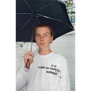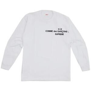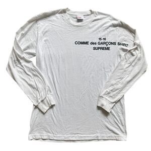 A highly collectible piece from the FW15 collaboration between Comme des Garçons and Supreme, this long-sleeve tee showcases the signature logo treatment that merges streetwear edge with avant-garde influence. A must-have for collectors and fashion enthusiasts alike.