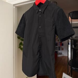 This listing is for a rare comme des garçon short sleeve shirt that features French terry sleeves!