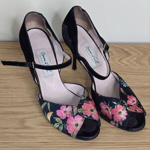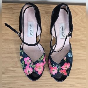 Comme il Faut Women’s Black Flower Velvet Argentine Tango Dance Heels Size 11
