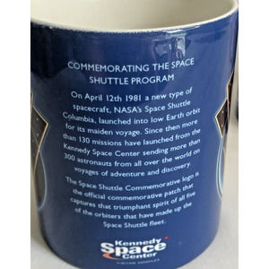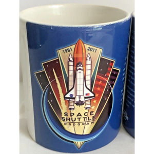 Commemorating Space Shuttle Program 1981-2011 Mugs Cups Kennedy Space Center. 3.75 in tall x 3" in diameter. Very good used condition. No chips, no cracks. Stickers still on the bottom.