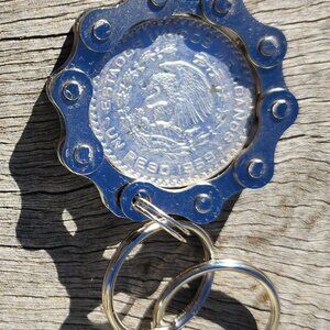 Commemorative 1959 Mexican Silver Peso Keychain 10% Silver Biker Chain Keyring