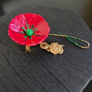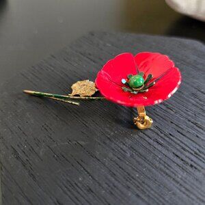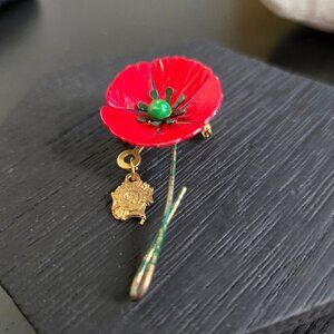 Commemorative Veterans of Foreign USA War Poppy Flower Brooch Pin Red Enamel VFW