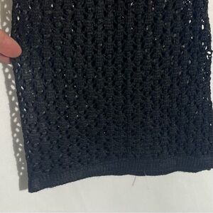 This elegant black knit dress offers a sophisticated look with its intricate pattern and flattering fit. Perfect for any occasion, it combines style and comfort effortlessly.