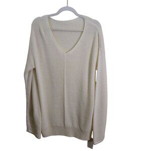 Commence NWT Ivory Chunky Knit Long Line V-neck Sweater Size L