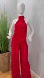Commense Asymmetric Halter Crop Top With Wide Leg Pants Set Red M