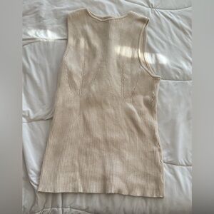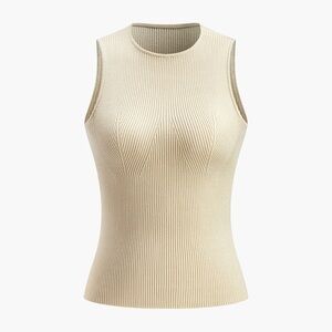 Chic ribbed tank top by Commense. Sleeveless design. Soft beige color. Perfect for versatile styling.