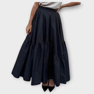 Commense Black Asymmetrical Pleated Maxi Skirt – 100% Cotton – Size XL