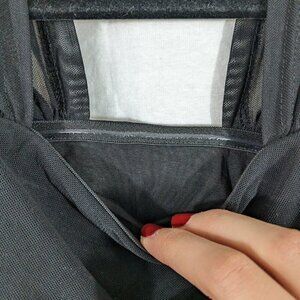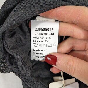 A black form fitting mesh crop top gathered on each sides with queen Anne type sleeves