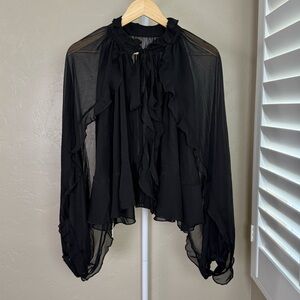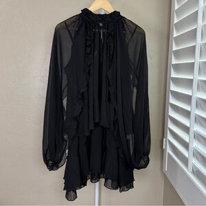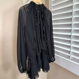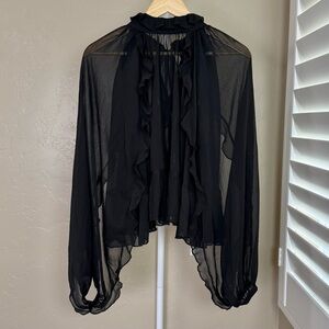 • Sheer ruffle overlay with long sheer sleeves: