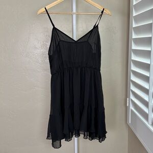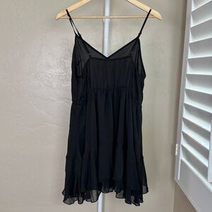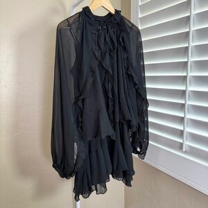 NWT Commense Black Tiered Ruffle Chiffon Mini Dress Cape Set L