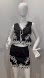 Keywords: two-piece set, black skirt set, sleeveless vest, mini skirt, floral applique, black and white outfit, party outfit, summer set, womens fashion, designer set, cocktail attire, dressy casual, going out outfit… Bins 015-32
