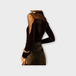 Commense Black Velvet & Lace Mesh Long Sleeve Top – XL (US 12)