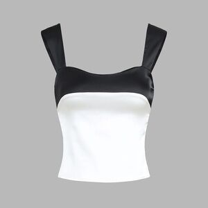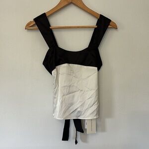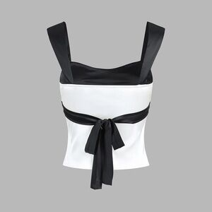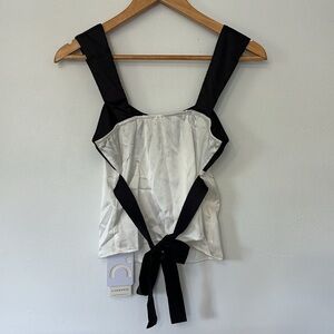 Commense Black & White Colorblock Satin Tank Top with Bow