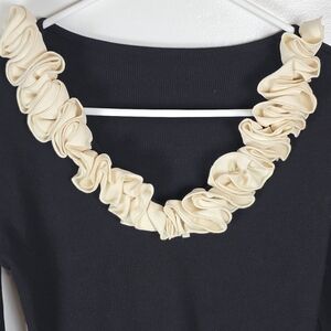 Gorgeous black knit crop top! Cute cream ruffles on scoop neck. Long sleeves. 100% Cotton. Beautiful quality.