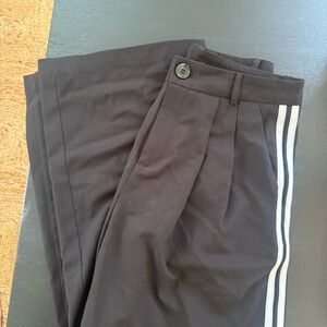 Discover the perfect blend of style and comfort with these Commense trousers, featuring a sleek black design accented by bold white stripes. Crafted for versatility, these trousers offer a flattering fit with a touch of athletic flair, making them ideal for both casual outings and sporty occasions.