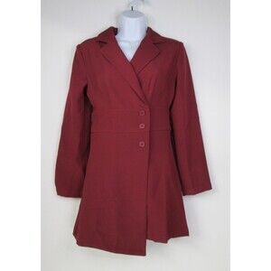 Elegant burgundy jacket with flattering flare. Features a tailored fit and button accents. Ideal for chic outings.