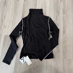 Commense Casual Slinky Turtleneck Contrast Trim Ribbed Knit Shirt Black Large