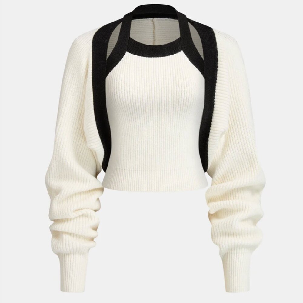 Commense Color-Block Cutout Ribbed Sweater Set
