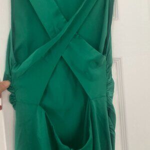 Commense Cowl Neck Satin Back Cross Long Dress - Green