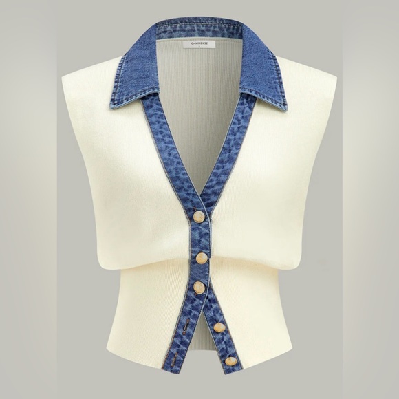Commense Cream Ribbed Knit Top
