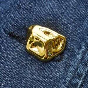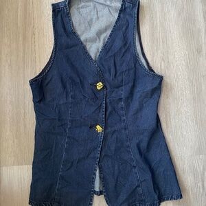 Stylish dark blue denim top. Features a V-neck and gold button details. Perfect for casual wear or a night out. No stretch, fit is between L and XL.