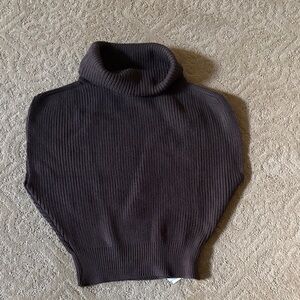 Stylish dark brown turtleneck sweater. Sleeveless design for versatile wear. Ideal for layering or standalone elegance.