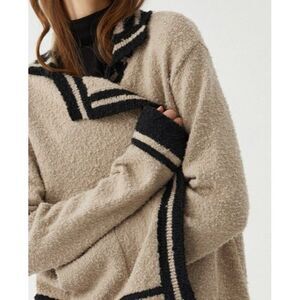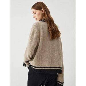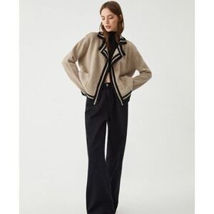 Commense Fall Chic Neutral Contrast Trim Knit Open Front Cardigan Small Acrylic