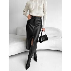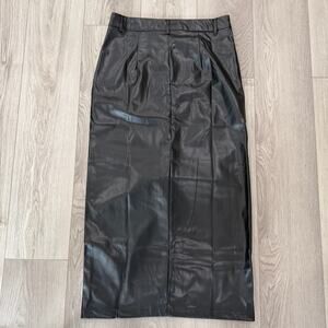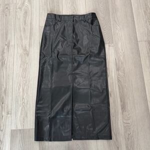 Commense Faux Leather Slit Midi Skirt Black Grunge Y2K M Fallcore